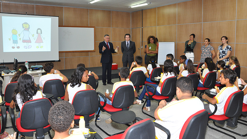 O desembargador Francisco Djalma apresentou as crianças aos candidatos do curso de formação de magistrados e falou da importância do projeto em “fazer com que a sociedade, através do estudante, conheça o Judiciário e nada melhor do que começar com crianças”.