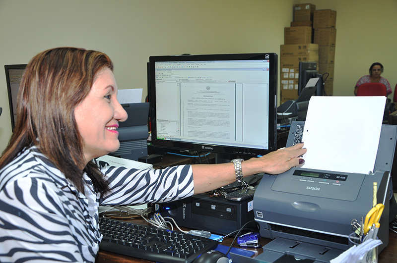 A dona Maria Lúcia Bento é servidora há mais de 20 anos e também empresta sua experiência e entusiasmo ao projeto. Ela lembra um importante resultado proporcionado com o trabalho. “Melhora 100% o andamento das tarefas realizadas pelos servidores, sem falar que a virtualização faz bem até para a saúde porque não teremos mais que manusear processos”, lembrou.