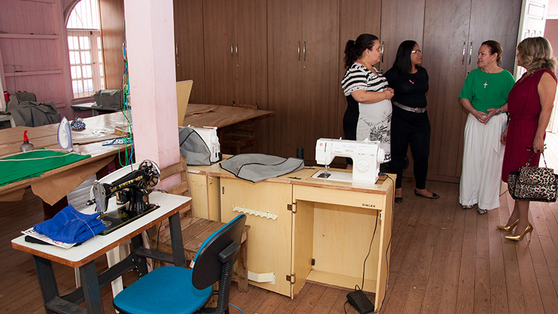 Entre eles os de cabeleireiro, corte e costura, manicure e pedicure, depilação e pizzaiolo. Tudo de forma gratuita em parceria com o Senac para mulheres de baixa-renda e mães solteiras, que contam ainda com o apoio da creche, para cuidar de seus filhos enquanto se capacitam.