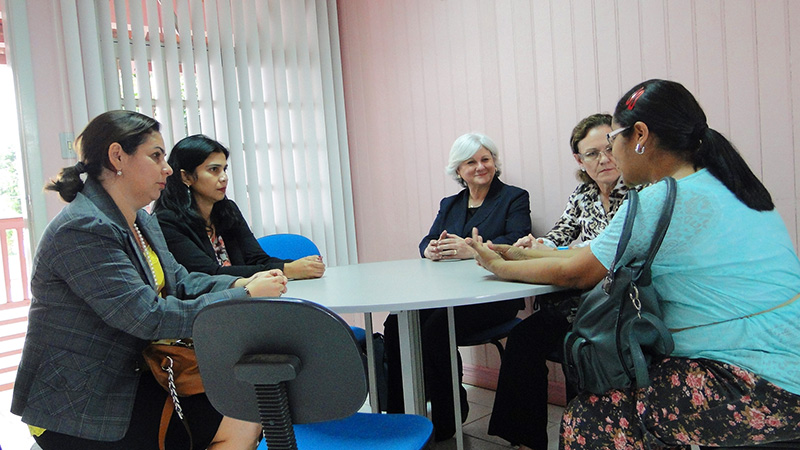 À ocasião foram discutidas as oportunidades que as mulheres vítimas de violência passam a ter ao buscar os serviços da entidade e a importância dos cursos e do acolhimento que lhes é oferecido.