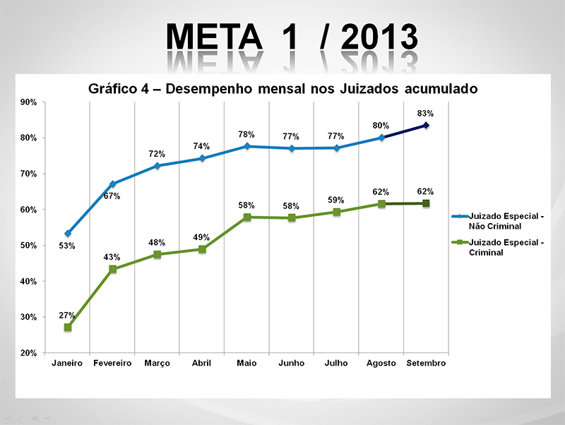 Por outro lado, e nesse mesmo período, os Juizados Cíveis cresceram de 53% em janeiro para 83% em setembro; ao passo que os Criminais estavam com apenas 27% e foram para 62% em setembro.
