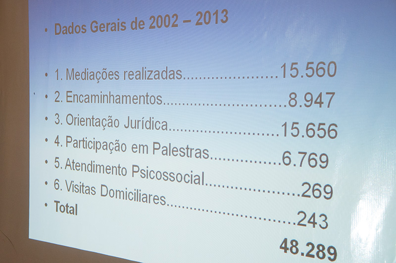 “Há 11 anos estamos realizando este trabalho que já garantiu mais de 48 mil atendimentos aos cidadãos, como orientação jurídica, atendimento psicossocial, encaminhamentos e visitas domiciliares. Porém o mais importante é aproximação entre o Poder Judiciário e a comunidade”, salientou a desembargadora Eva Evangelista, que é a coordenadora executiva do Programa Justiça Comunitária.