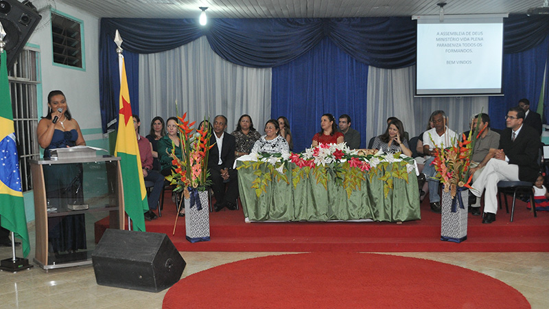 A cerimônia de formatura foi realizada na sede da Igreja Evangélica Assembleia de Deus Vida Plena, no segundo distrito de Rio Branco. No total, 39 alunos receberam os diplomas diretamente das mãos dos padrinhos e madrinhas de turma – Dirceu Augusto, diretor presidente do Instituto de Administração Penitenciária do Acre (Iapen), Mirla Regina, juíza de Direito e Eva Evangelista, desembargadora, decana do Tribunal de Justiça do Acre.