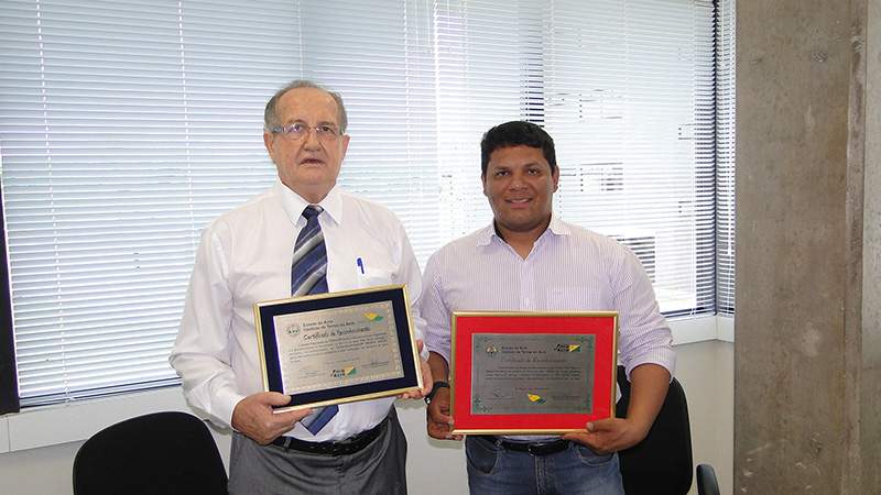 Durante o encontro, o corregedor geral da Justiça também recebeu das mãos do diretor presidente do Iteracre uma placa em reconhecimento pelos relevantes serviços prestados em favor da sociedade acreana nos processos de regularização fundiária, através dos cartórios do registro de imóveis e outras serventias extrajudiciais do estado.