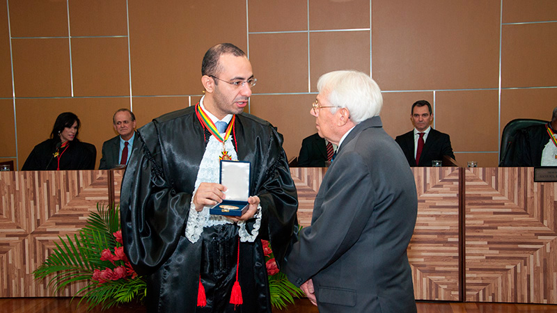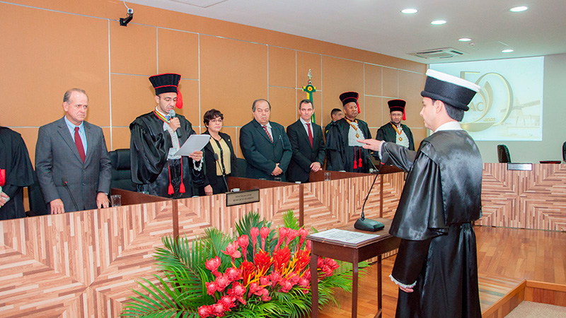 A solenidade aconteceu no Plenário da sede da instituição, teve condução do desembargador-presidente Roberto Barros, acompanhado dos membros da Corte de Justiça Acreana e pela procuradora de Justiça Kátia Rejane, representando o Ministério Público Estadual.