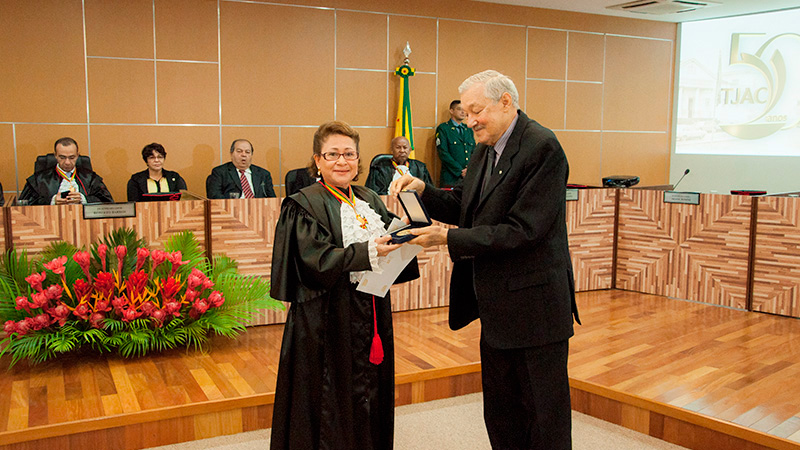 Eles receberam Medalha do Cinquentenário, confeccionada exclusivamente para enaltecer os 50 anos de instalação do TJAC.