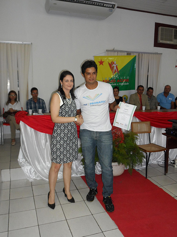 O evento aconteceu no Fórum Dr. Quirino Lucas de Morais. Estiveram presentes a coordenadora estadual do programa “Começar de Novo”, juíza de Direito Maha Manasfi, os juízes substitutos Carolina Bragança (Feijó), Ana Saboya (Cruzeiro do Sul), Flávio Mariano (Tarauacá) e Guilherme Fraga (4ª Vara Criminal de Rio Branco); o procurador jurídico Karil Shesma, que na ocasião representou o município de Feijó; o diretor da Unidade Penitenciária nº 5, Jackson Allan, a assessora pedagógica e o assessor administrativo do Senai, Edinilza Soster e Paulo Roberto, o representante da OAB/Acre, advogado José Dantas, além dos formandos, familiares e convidados.
