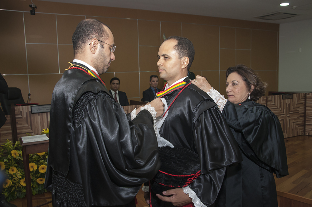 Laudivon Nogueira e Júnior Alberto receberam nessa ocasião o Colar do Mérito Judiciário, em observância à Resolução nº 22 do Tribunal Pleno, a qual determina que a honraria deve ser conferida a todo novo membro da instituição no ato de sua posse.