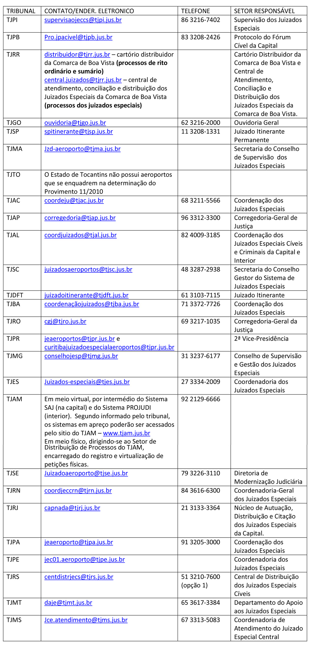 Nos demais aeroportos brasileiros, há também unidades do Poder Judiciário em funcionamento. Para consultá-las acesse a Lista de unidades jurisdicionais em funcionamento nos aeroportos brasileiros.