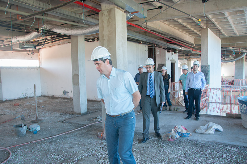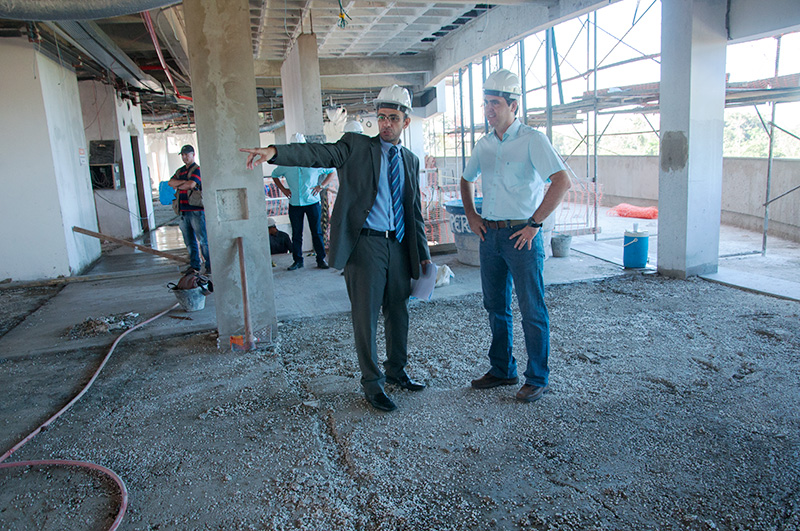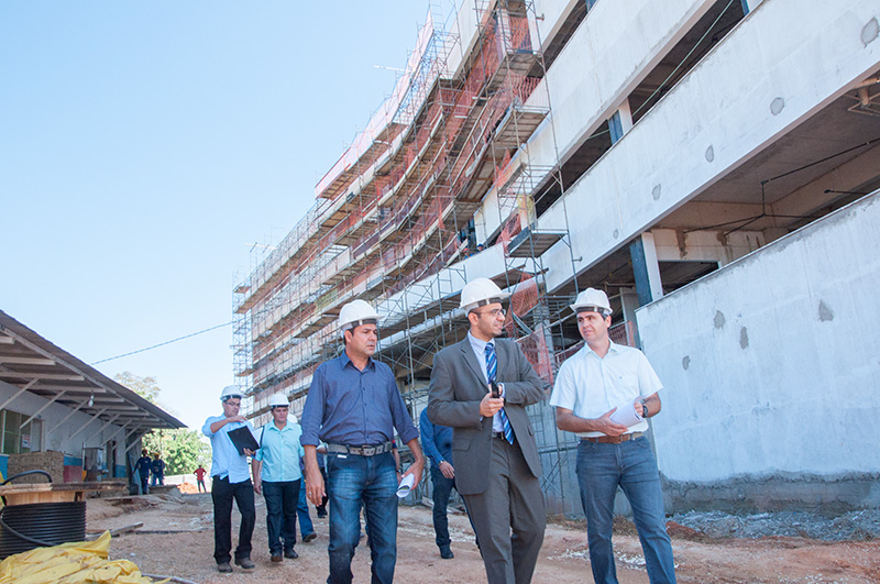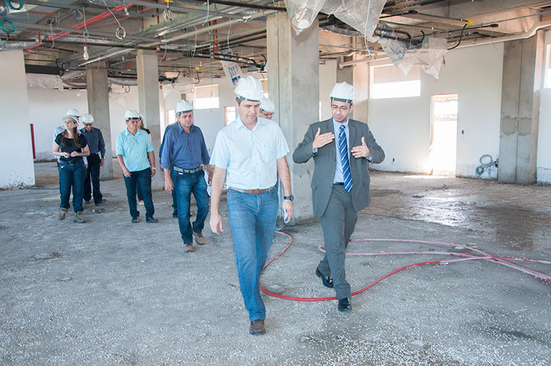 O juiz-auxiliar da presidência, Cloves Ferreira, diretores, engenheiros, assessores e técnicos percorreram as dependências do prédio, cujo conjunto estrutural está 100% concluído e já está na fase final de acabamento.