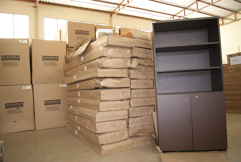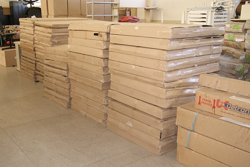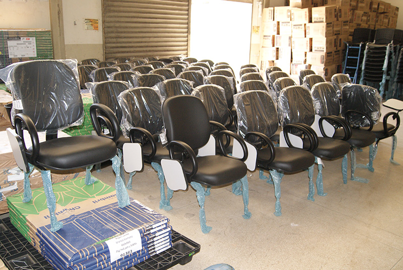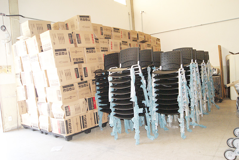 Hoje o almoxarifado está completamente lotado de cadeiras, armários, mesas, sofás e longarinas que serão encaminhados para Capital e interior.