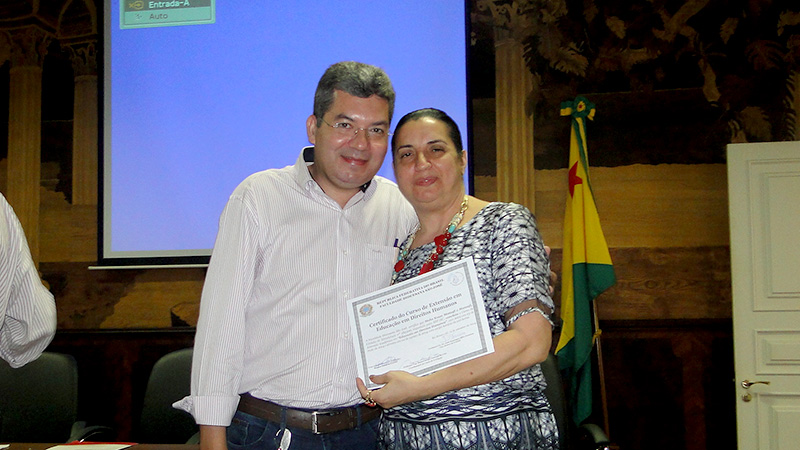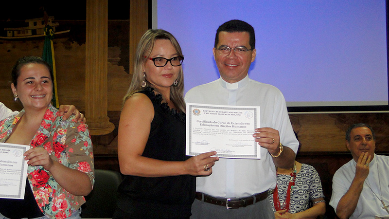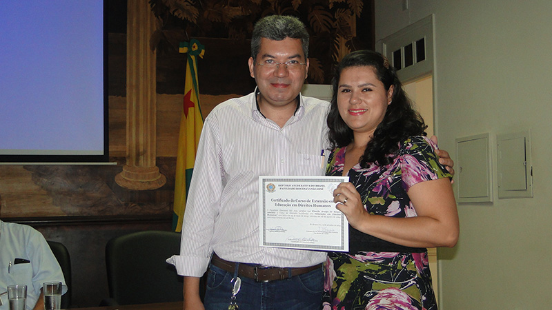 A solenidade, conduzida pela juíza de Direito Titular da Vara de Execuções de Penas e Medidas Alternativas (Vepma) da Comarca de Rio Branco, Maha Manasfi, contou com a presença do diretor da Faculdade Diocesana, Dom Joaquín Pertiñez e do vice-diretor e coordenador padre Domingos Ferreira; do coordenador do Curso de Filosofia e coordenador do Curso em Direitos Humanos, professor Mauro Sérgio; e do secretário de estado de direitos humanos, Evandro Rosas.