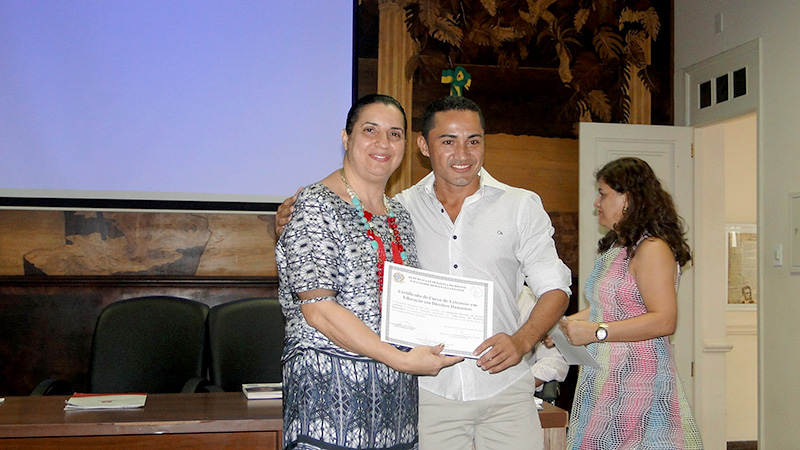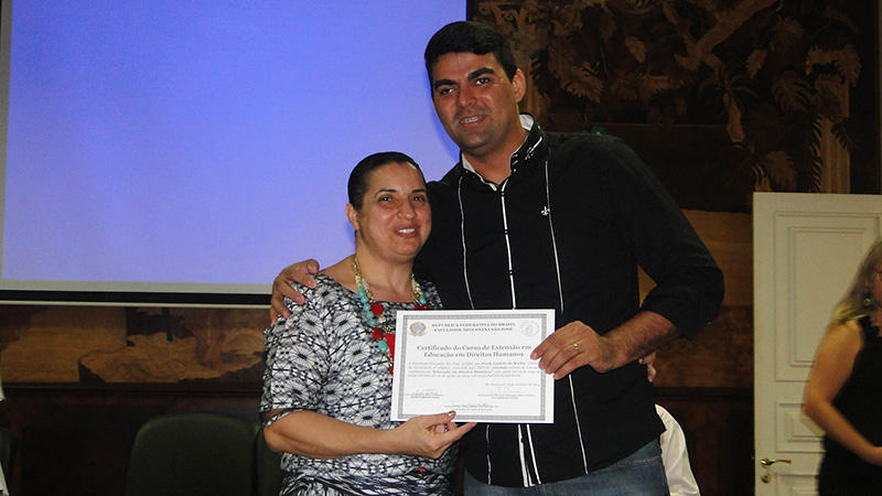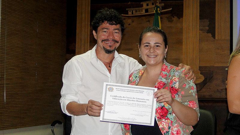 Os alunos do Curso de Extensão Acadêmica em Educação em Direitos Humanos participaram no último sábado (13), no auditório do Palácio do Tribunal de Justiça, da cerimônia de certificação.