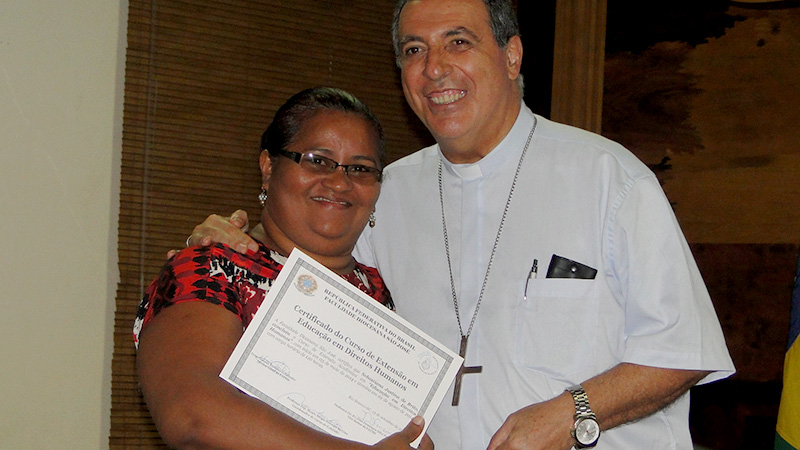 Ao saudar os presentes, o padre Domingos salientou que os Direitos Humanos “se fundamentam na dignidade da pessoa humana. Portanto é uma temática de grande relevância pra nossa sociedade, sobretudo na nossa atualidade, em que muitas vezes, os Direitos Humanos são negados. E este curso teve como finalidade, nos tornar conscientes, mostrando-nos a importância dos mecanismos que nós devemos buscar para que esses direitos sejam, de fato, efetivados”.