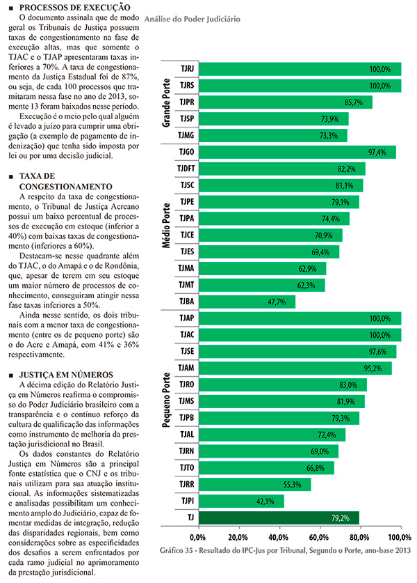 O documento assinala que de modo geral os Tribunais de Justiça possuem
