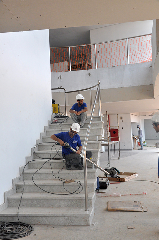 No Fórum Criminal as equipes trabalham na finalização de alguns espaços, em detalhes da obra que devem garantir o conforto de magistrados, servidores e a população que procurar os serviços.