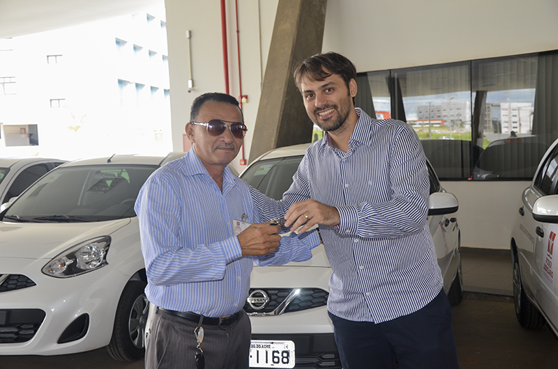 O desembargador-presidente Roberto Barros, na tarde desta sexta-feira (14), acompanhado da diretora regional do Vale do Alto Acre, Caruline Simão, entregou os nove veículos novos de pequeno porte.