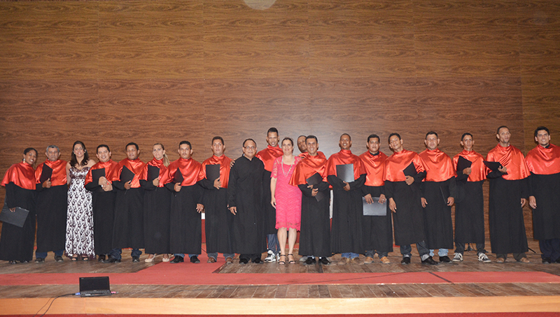 A solenidade aconteceu no Teatro da Universidade Federal do Acre (Ufac) e foi conduzida pela juíza titular da Vepma, Maha Manasfi. Estiveram presentes servidores e colaboradores do Judiciário, pastores e padre, além dos reeducandos, seus amigos e familiares.