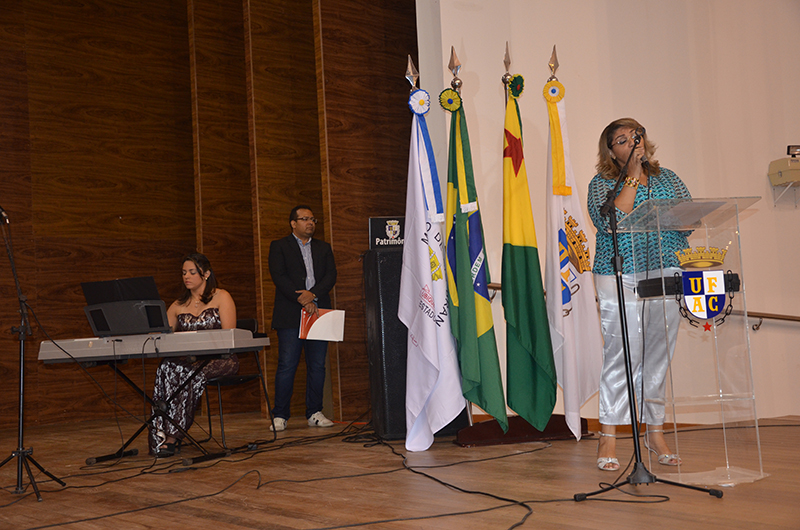 A cerimônia teve início com a apresentação do Hino Nacional pela cantora Alice Cristina, que faz parte do coral Redenção, da Vepma. Em seguida, os professores Flávio e Otoniel Turi apresentaram o Hino Acreano.