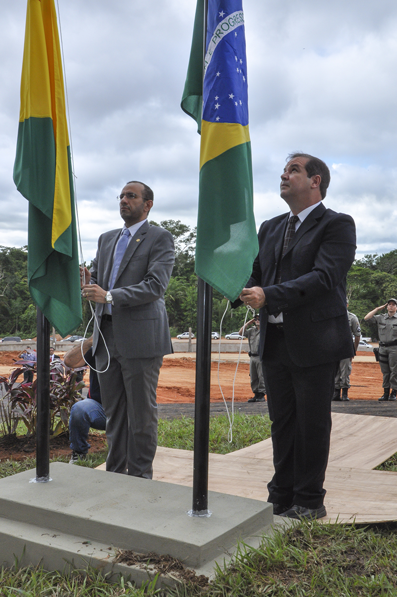 Roberto Barros e Tião Viana conduziram o ato de hasteamento de bandeiras.
