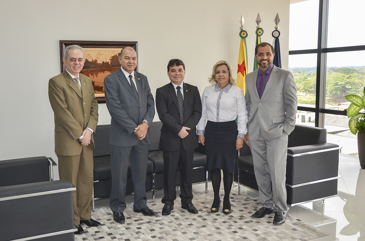 A presidente do Tribunal de Justiça do Acre, desembargadora Cezarinete Angelim, esteve na manhã desta quinta-feira (28) na sede do Ministério Público Estadual (MPAC), para uma visita institucional. Na ocasião, ela esteve reunida com o procurador geral de Justiça, Oswaldo D’Albuquerque, o procurador geral adjunto para assuntos jurídicos, Cosmo de Souza, o secretário-geral Órgão, promotor de Justiça Celso Jerônimo e o presidente da Associação do Ministério Público do Acre (Ampac), promotor de Justiça Admilson Oliveira.