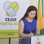 Os acordes do Hino Acreano deram início à solenidade, seguida com as assinaturas de instalação e designação do funcionamento do Cejus-Porto Acre.
