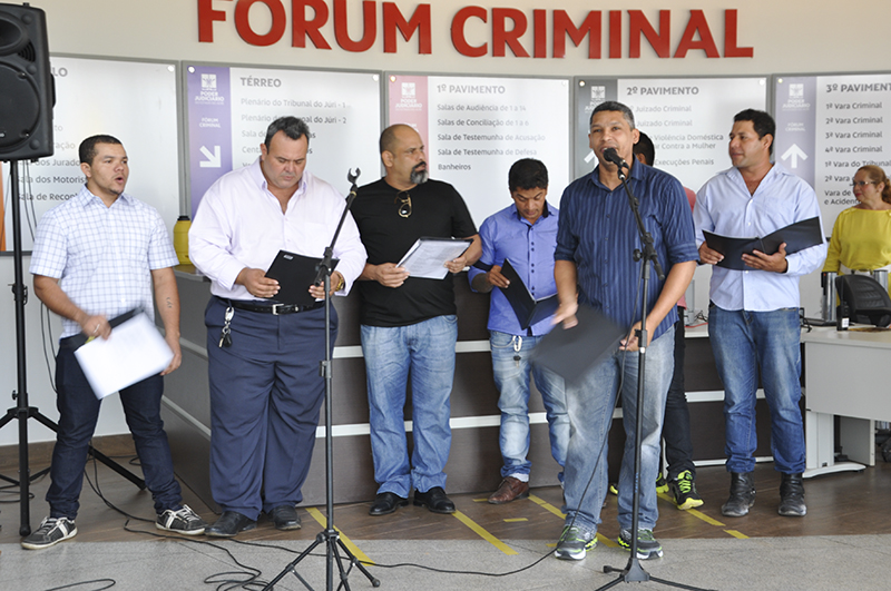 Uma ação, desenvolvida através das Varas da Violência Doméstica e Familiar e de Penas e Medidas Alternativas, também incluiu uma apresentação especial do Coral Redenção, composto por reeducandos e egressos do sistema carcerário estadual, que faz parte das atividades do Programa Começar de Novo.