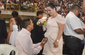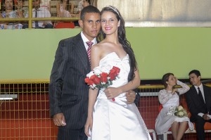 Os 1.000 noivos presentes foram representados diante do juiz pelo casal mais jovem, formado por Ingrison Brenno Iduino Menezes (20) e Ingrety Shayane Valentin (16) e pelo casal mais maduro (citado no início desta matéria).
