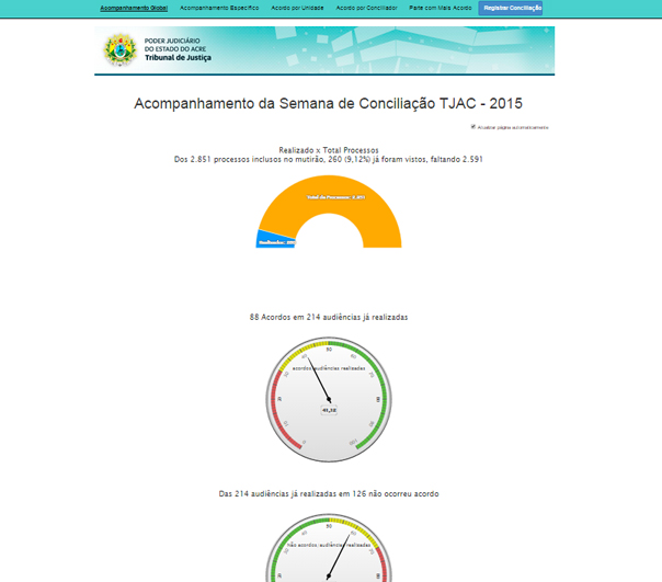 Além disso, houve o lançamento, também por ocasião da abertura dos trabalhos, do Conciliômetro, uma ferramenta que permita acompanhar em tempo real todas as informações e dados relacionamentos à Semana de Conciliação, com a quantidade acordos celebrados, o número real de audiências realizadas, os conciliadores que mais estão se destacando etc. O Conciliômetro foi uma idéia concebida pela desembargadora-presidente Cezarinete Angelim, e executada pelo servidor Jessé Drumond, da Diretoria de Gestão Estratégica (Diges) do Tribunal.