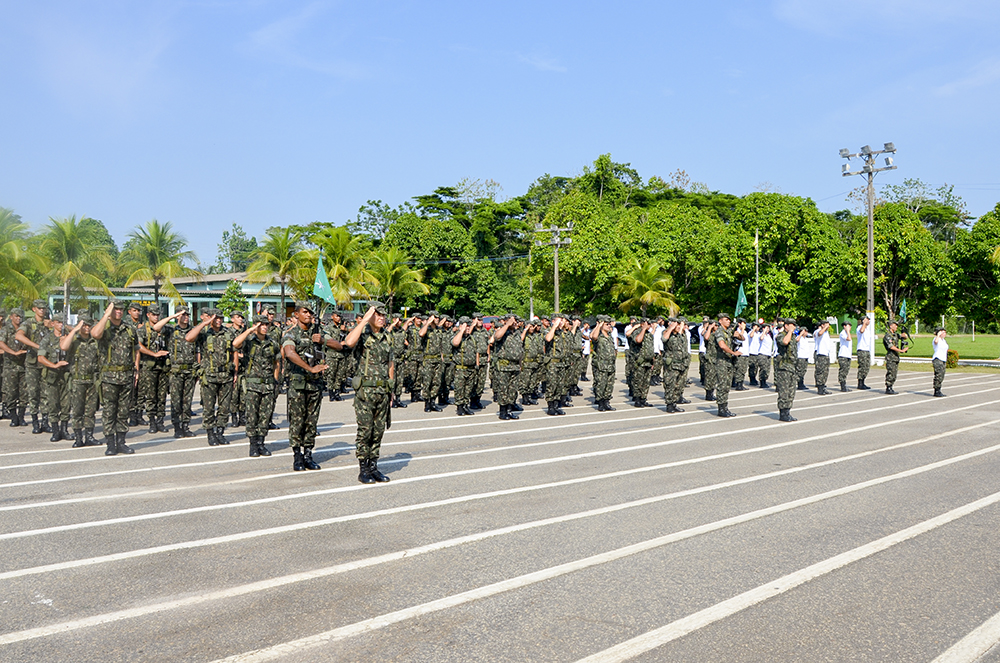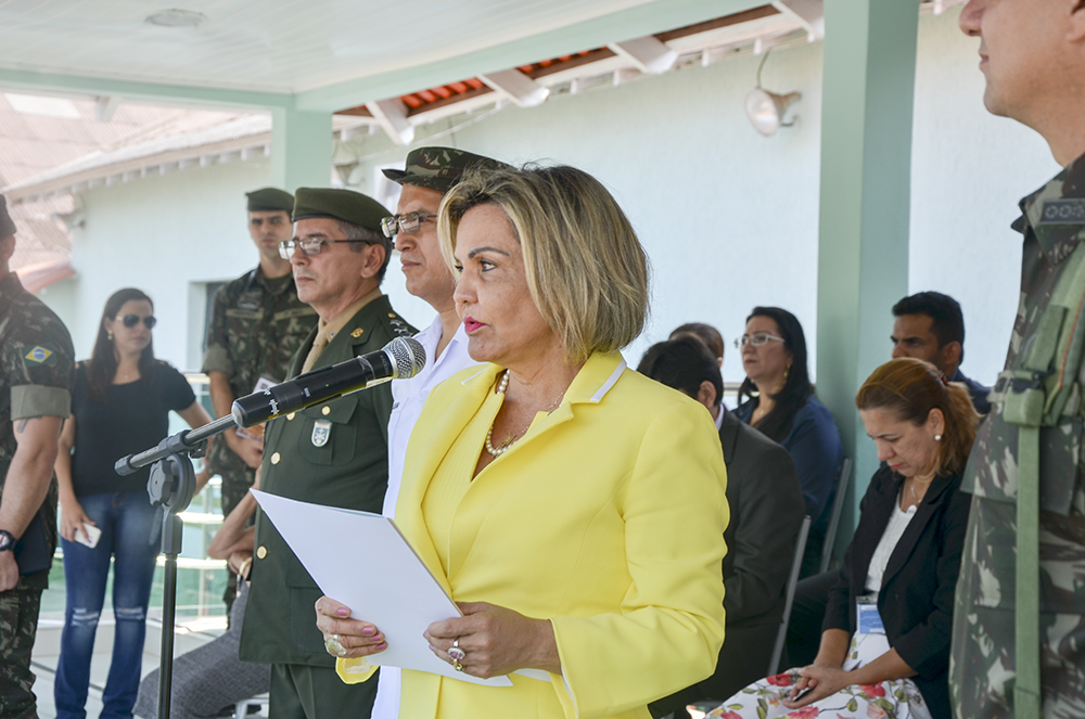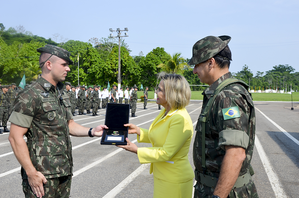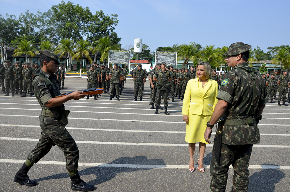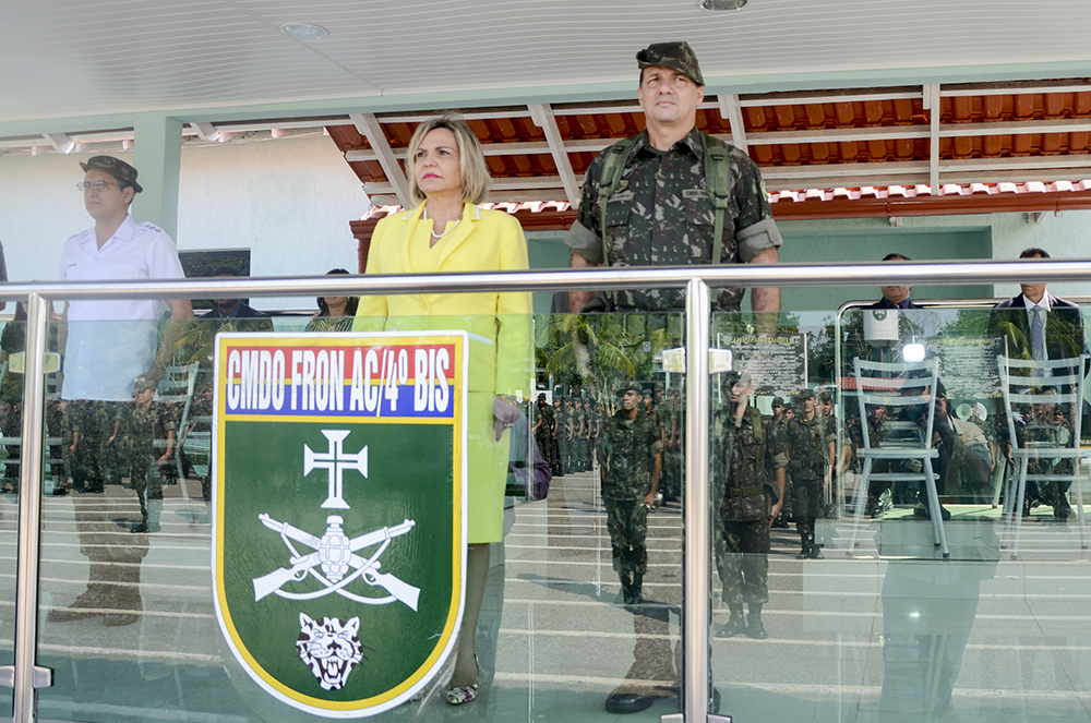 A desembargadora-presidente Cezarinete Angelim foi a grande homenageada durante a formatura militar do 4º Batalhão de Infantaria de Selva (4º BIS), realizada nesta sexta-feira (4). Diretores, assessores, secretários do Tribunal de Justiça do Acre, a juíza-auxiliar da Presidência, Mirla Regina, bem como autoridades civis e militares, também prestigiaram a solenidade.