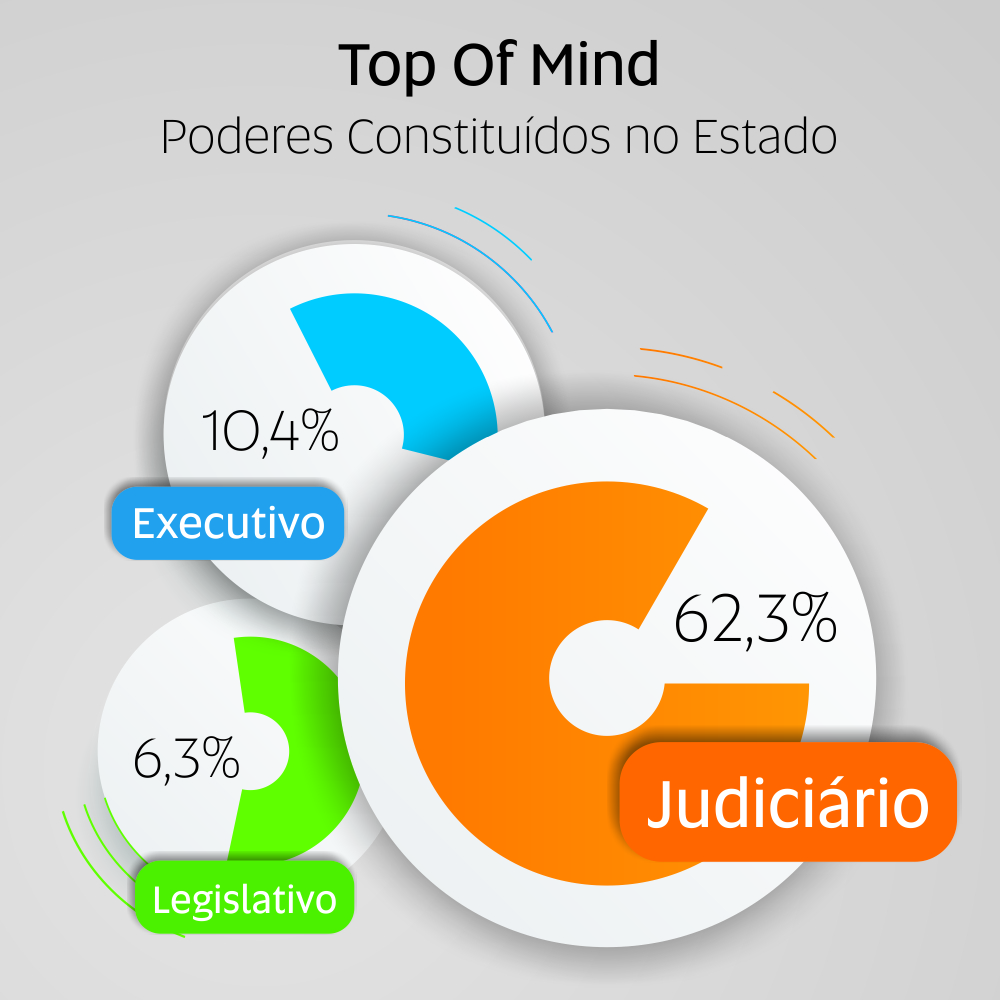 Entre os poderes constituídos no Estado, o Judiciário foi agraciado com o título de mais confiável, com 62,30% da preferência dos entrevistados. O Poder Executivo ficou com 10,40%, enquanto que o Legislativo teve 6,3%.