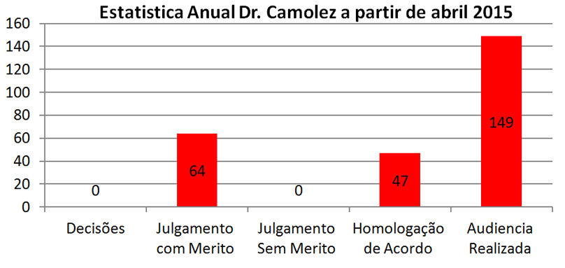 De acordo com as estatísticas, entre os meses de abril de 2015 e abril deste ano, o juiz foi responsável 849 audiências, que resultaram em 723 acordos, o que equivale a 85,1%.