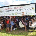 O Casamento Coletivo na Floresta alcançou 106 casais em Novo Horizonte, que disseram o aguardado “SIM”, em cerimônia conduzida pelo juiz de Direito Wagner Alcântara, titular da 2ª Vara Cível da Comarca de Cruzeiro do Sul; com a participação da diretora regional do Vale do Alto Acre (do Tribunal), Aparecida Bardales; do defensor público Rogério Pacheco; do prefeito de Marechal Thaumaturgo, Aldemir Lopes, e do coordenador de projetos da SOS Amazônia (parceira do Tribunal na atividade), Adair Duarte.