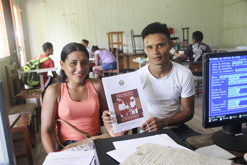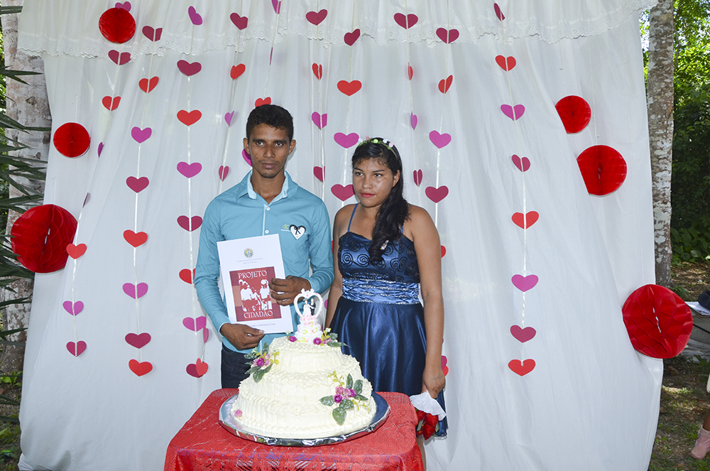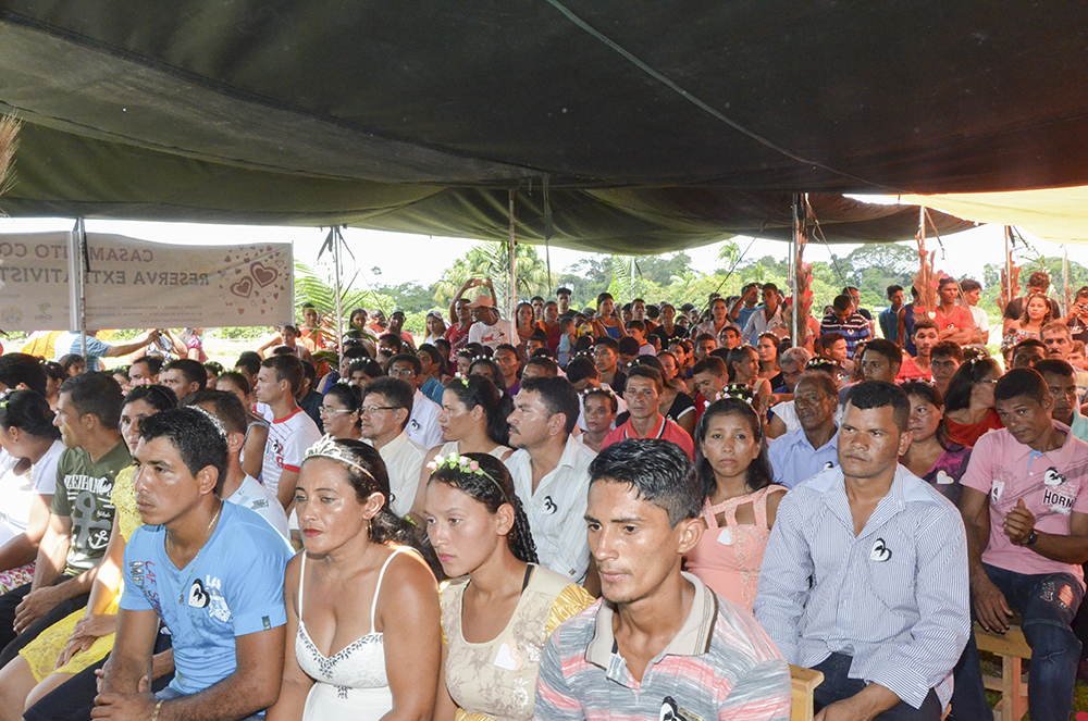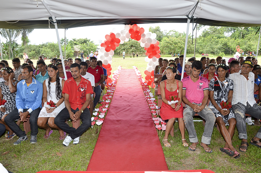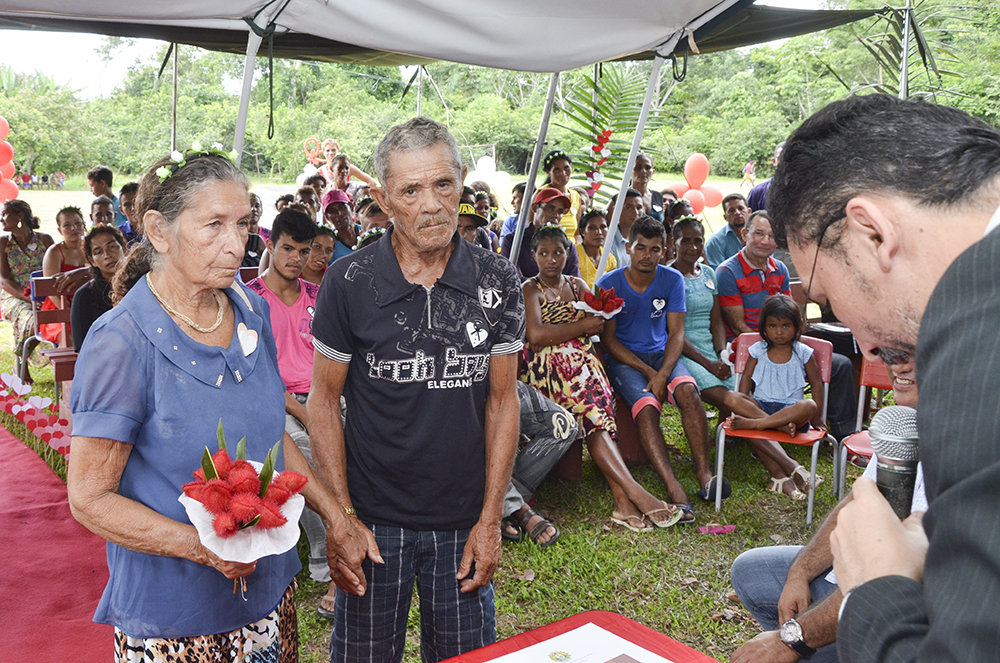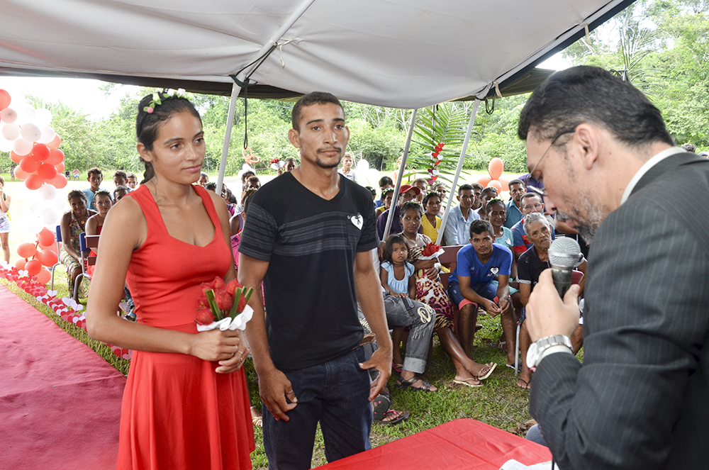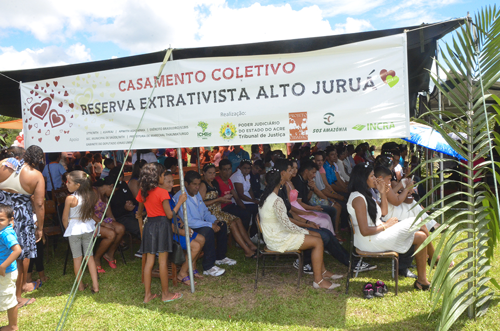 O Casamento Coletivo na Floresta alcançou 106 casais em Novo Horizonte, que disseram o aguardado “SIM”, em cerimônia conduzida pelo juiz de Direito Wagner Alcântara, titular da 2ª Vara Cível da Comarca de Cruzeiro do Sul; com a participação da diretora regional do Vale do Alto Acre (do Tribunal), Aparecida Bardales; do defensor público Rogério Pacheco; do prefeito de Marechal Thaumaturgo, Aldemir Lopes, e do coordenador de projetos da SOS Amazônia (parceira do Tribunal na atividade), Adair Duarte.