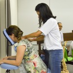 aferição de pressão, vacinação, teste rápido de glicemia, massagem, orientação e agendamento de exames preventivos colo do útero/câncer de mama, exposição de artesanatos e produtos de beleza e nutrição. Carinho, acolhimento igual abraço de mãe, era o clima de toda a equipe que esteve nos locais, levando as ações do programa Qualidade de Vida, implementado pela atual gestão do Tribunal.