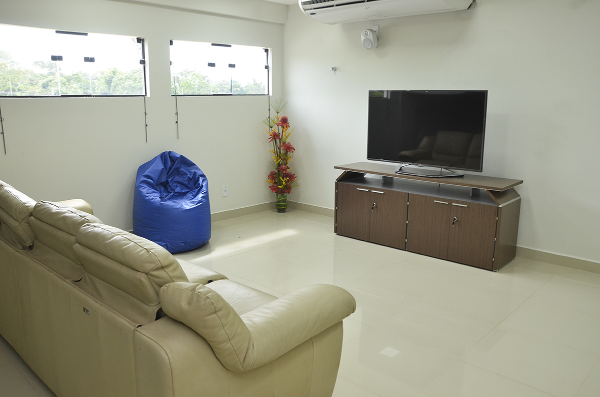 Há um espaço recreativo, planejado para o descanso e descontração dos servidores.