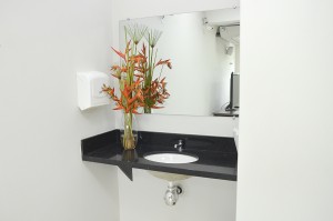 Já as lajes foram construídas em EPS, proporcionando isolamento termo acústico. Destaque-se também que todo o mobiliário adquirido possui laudo ecológico que atesta sua ergonomia e sustentabilidade.