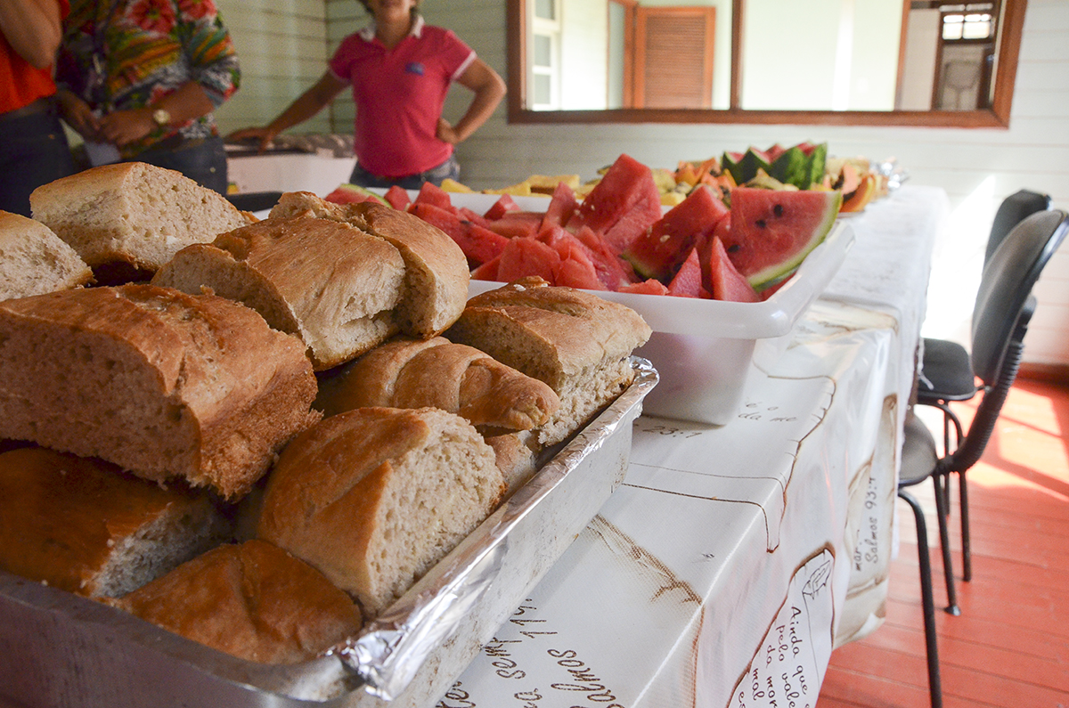Um delicioso café da manhã marcou o início das atividades desta sexta-feira (3). O desjejum foi preparado especialmente pelas internas da Apadeq feminina para a equipe da Vara de Proteção à Mulher. No cardápio: bolos, frutas, sucos, pães, tapioca e até iogurte natural produzido na própria comunidade terapêutica.