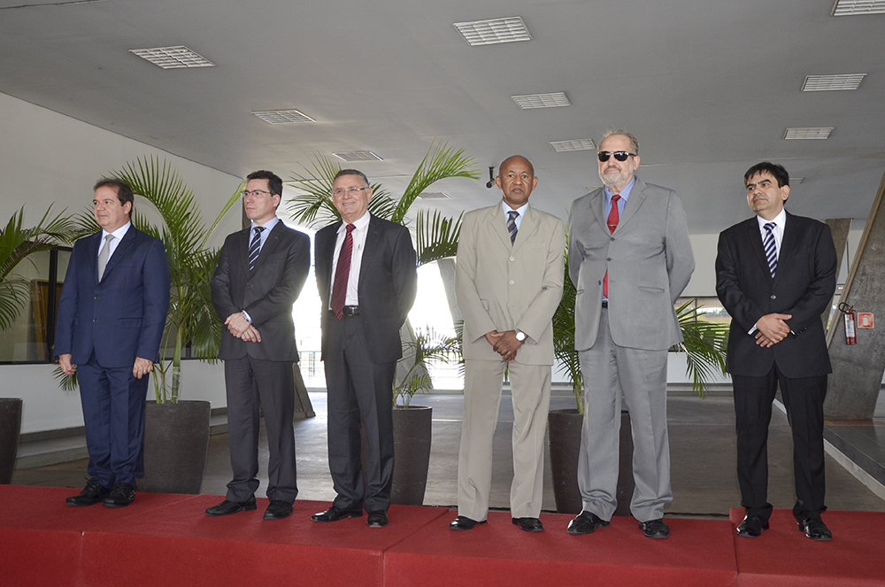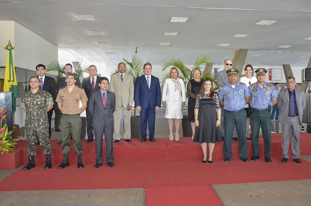 A leitura do Decreto nº 8.428/2014 foi precedida pela entrega das comendas, realizada pelas autoridades presentes, incluindo os representantes dos Poderes Judiciário e Executivo.