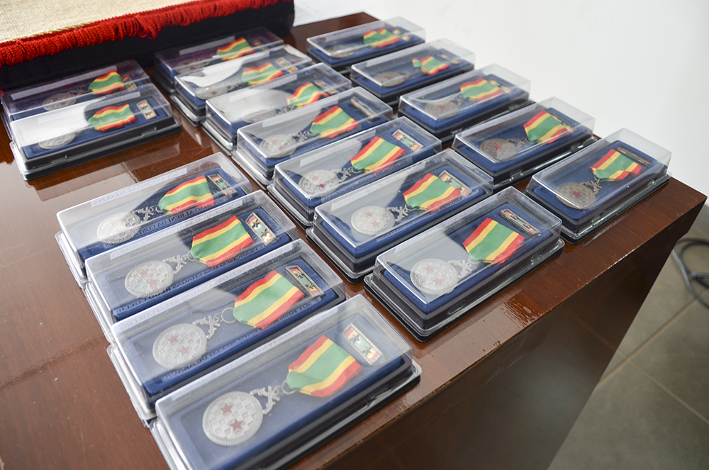 Em seguida, houve o momento das homenagens, com a entrega de medalhas por tempo de serviço da Polícia Militar. A honraria é entregue em três ocasiões na carreira de um policial, 30 anos (ouro), 20 anos (prata) e 10 anos (bronze). Destina-se a recompensar os bons serviços prestados pelos oficiais e praças policiais militares.