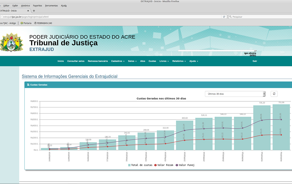 O Sistema Gerenciador de Arrecadação Extrajudicial (ExtraJud) é um software desenvolvido pelo TJAC para fornecimento e consulta de selos, acompanhamento de arrecadação e fiscalização de atos praticados pelas serventias.