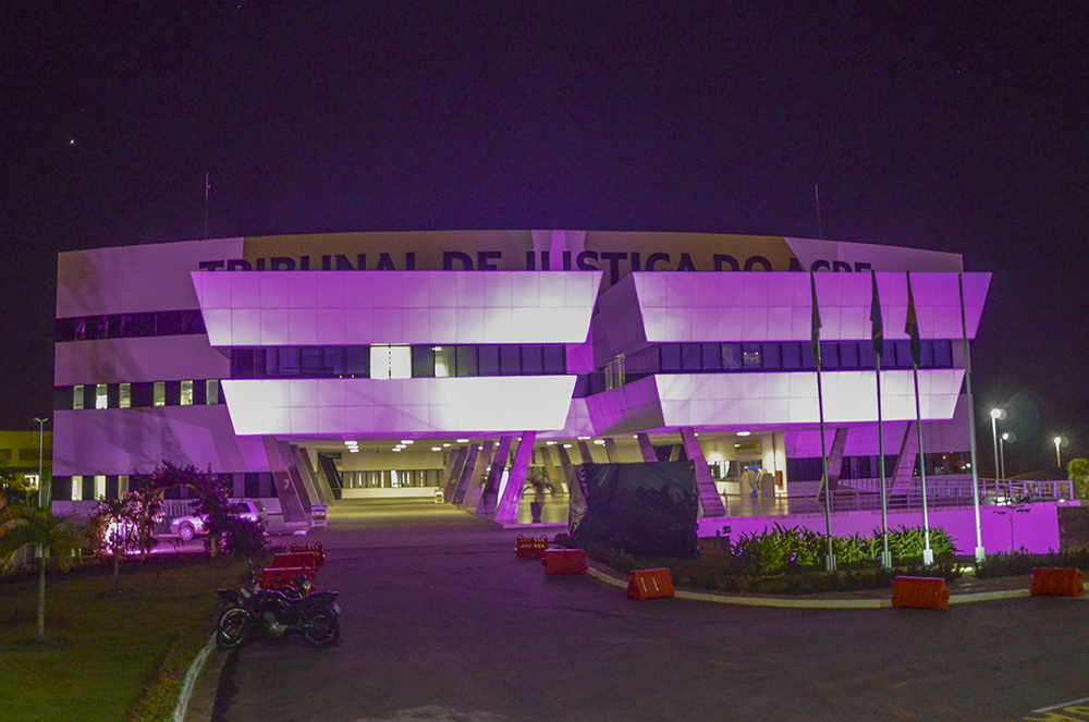 Sede Administrativa do TJAC ganha iluminação especial com o objetivo de chamar a atenção para a importância do diagnóstico precoce da doença.
