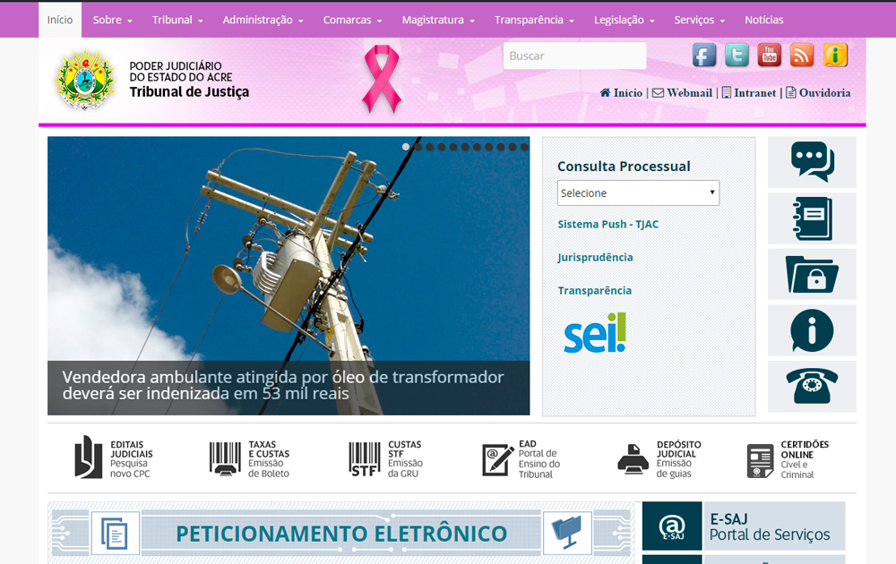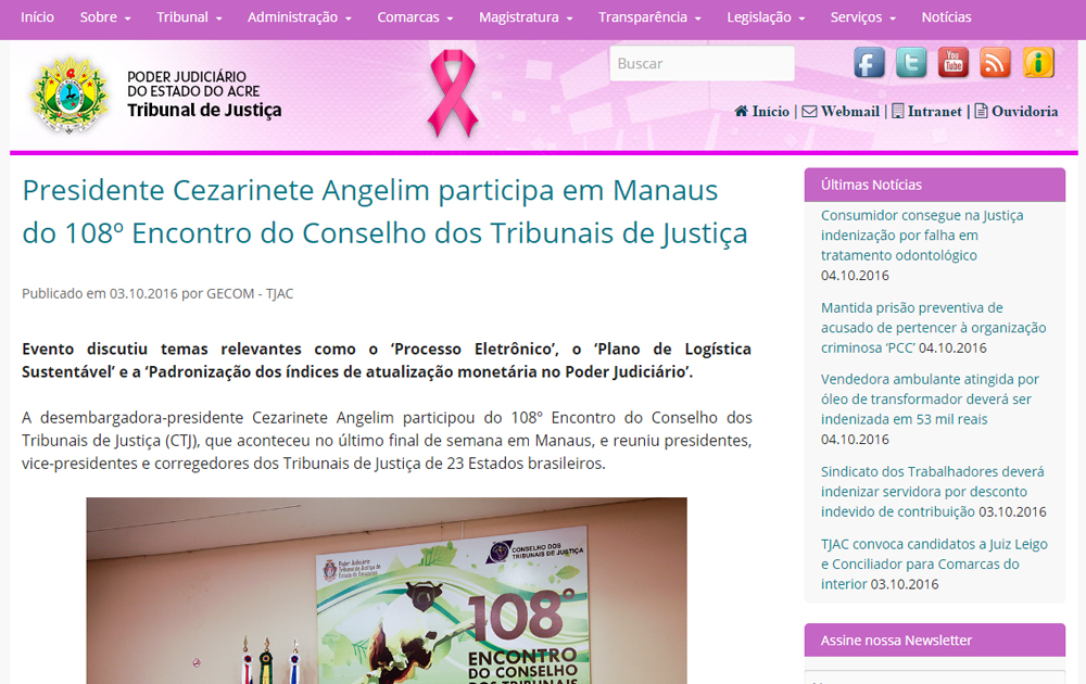 O site do Tribunal (www.tjac.jus.br) e a sua página na rede social Facebook também assumem tom rosa durante todo este mês.