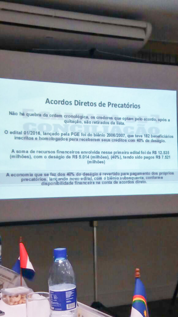Na Paraíba, a Câmara de Conciliação de Precatórios abriu um edital que possibilitou às pessoas com precatórios referentes ao biênio 2006-2007, negociarem e receberem de forma antecipada, com um deságio (desconto) de 40% do valor total. A entrega do primeiro lote ocorreu no último dia 24 e o pagamento, autorizado a cerca de 180 credores, girou em torno de R$ 7,5 milhões.