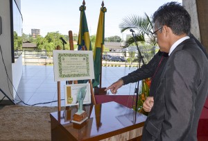 “A pedra bruta transformada em arte pelas mãos do artista plástico Jorge Rivasplata, e restaurada pelo artista plástico Péricles José da Silva, oferecida ao Tribunal de Justiça na época do então prefeito Jorge Kalume, traduz em sua forma e plasticidade a razão de ser da nossa Instituição”, declarou a presidente do TJAC ao referir-se à estátua-símbolo da Justiça.