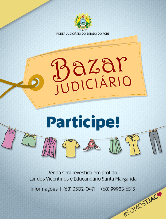 Começa nesta quinta-feira (26) o 1º Bazar do Judiciário Acreano promovido em prol de entidades de assistência social de Rio Branco. Centenas de itens foram doados por magistrados e servidores e ficarão a disposição da população, a baixo custo, durante dois dias em tenda montada em frente ao Palácio da Justiça, das 10h às 18h.