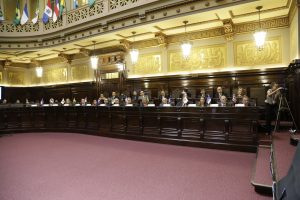 O vice-presidente do Supremo Tribunal Federal (STF), Dias Toffoli, também prestigiou a solenidade. “Esses encontros de presidentes são extremamente necessários e produtivos”, afirmou. De acordo com o ministro, é tendência no mundo ocidental a maior participação da Justiça na defesa dos direitos. “A democracia não é plena se não existir um Poder Judiciário pleno e eficiente, se não houver juízes que, com coragem, independência e soberania, dizem o que é a lei e o Direito.”