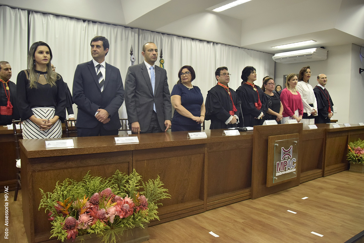 A presidente do Tribunal de Justiça do Estado do Acre, desembargadora Denise Bonfim, participou da posse do promotor de Justiça Celso Jerômino no cargo de procurador de Justiça do Ministério Público do Estado do Acre (MPAC). A solenidade ocorreu durante sessão do Colégio de Procuradores, na noite dessa segunda-feira (13), no auditório da instituição ministerial.