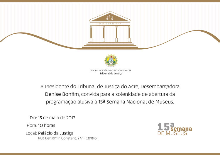A presidente do Tribunal de Justiça do Acre, desembargadora Denise Bonfim, conduzirá a abertura da 15ª Semana Nacional de Museus. O evento acontece no Palácio da Justiça, a partir das 10 horas da próxima segunda-feira (12).