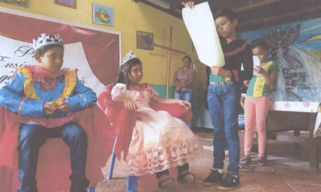 Como a Escola Municipal Edilsa Maria Batista, que dinamizou o aprendizado de 310 alunos do 1º ao 5º ano por meio do “Encenando com Gêneros Textuais”. O recurso foi empregado em materiais para a confecção de figurinos e cenários das peças teatrais.